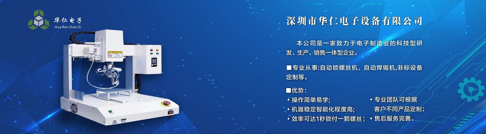 深圳市華仁電子設(shè)備有限公司是一家致力于電子制造業(yè)周邊設(shè)備的科技型研發(fā)、生產(chǎn)、銷售一體的企業(yè),專業(yè)從事:自動鎖螺絲機(jī);自動焊錫機(jī);非標(biāo)設(shè)備定制機(jī)等,公司長期以來在行業(yè)中積累了豐富的經(jīng)驗(yàn),擁有專業(yè)的研發(fā)、技術(shù)、銷售支持工程團(tuán)隊(duì)、各高級技術(shù)人才為客戶提供優(yōu)質(zhì)產(chǎn)品和服務(wù),同時(shí)不斷吸取國內(nèi)外先進(jìn)技術(shù),更準(zhǔn)確及時(shí)地為客戶提供優(yōu)質(zhì),性價(jià)比高的產(chǎn)品、公司以專業(yè)的售前、售中、售后服務(wù)贏得了客戶的信賴和好評,為客戶提供先進(jìn)自動化設(shè)備一體式解決方案、